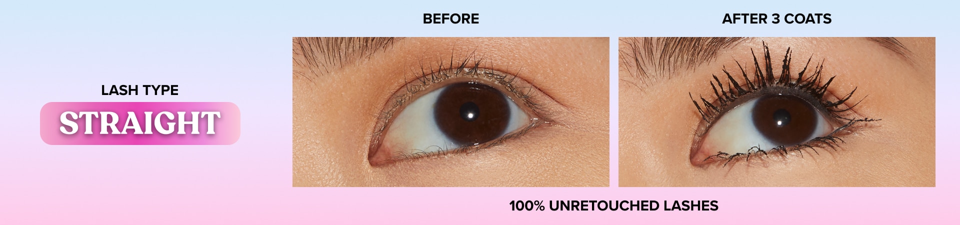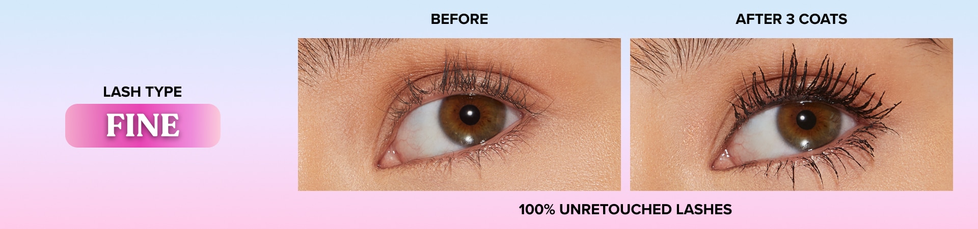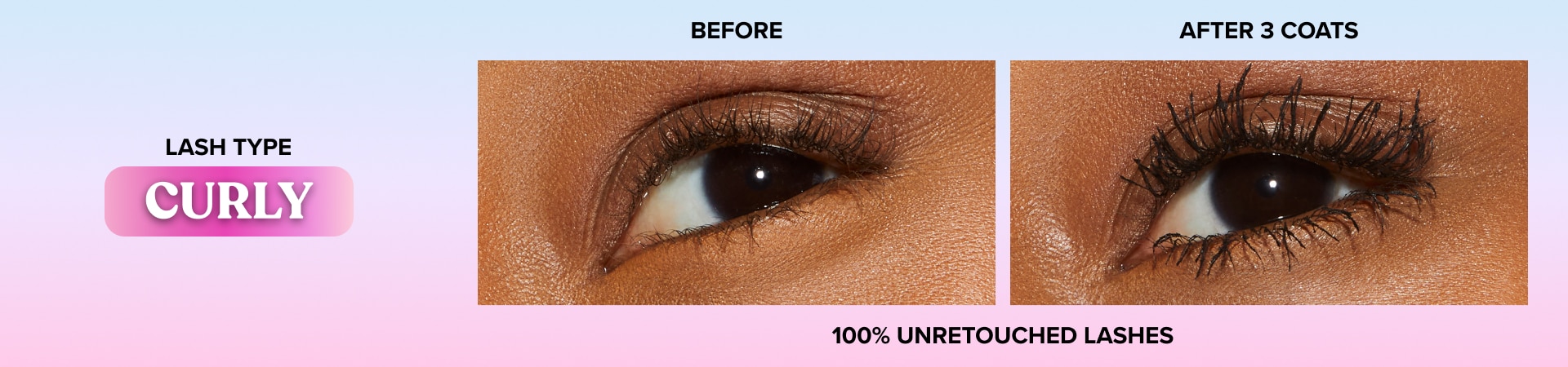 Our transformative Ribbon Wrap™ Technology creates a super-extended tube around lashes, stretching them to unbelievable lengths while our Lash Extension™ Brush sweeps through all lash types, including fine, sparse, short, straight, curly, downward, and dense lashes, wrapping them in our deep black formula and elongating them to outstretched perfection.